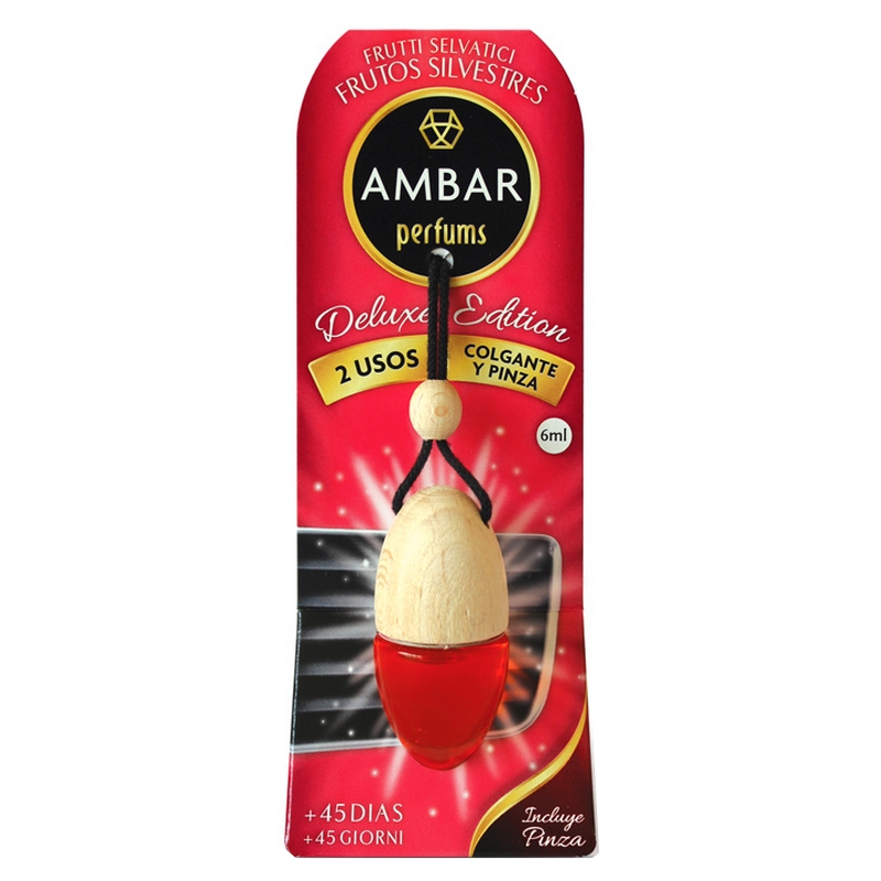 Désodorisant à suspendre pour la voiture Deluxe Edition, 0% d’alcool, parfum de qualité supérieure. Éliminez les mauvaises odeurs. Aux extraits naturels. +45 jours. Voiture de l’édition Deluxe de fruits sauvages.