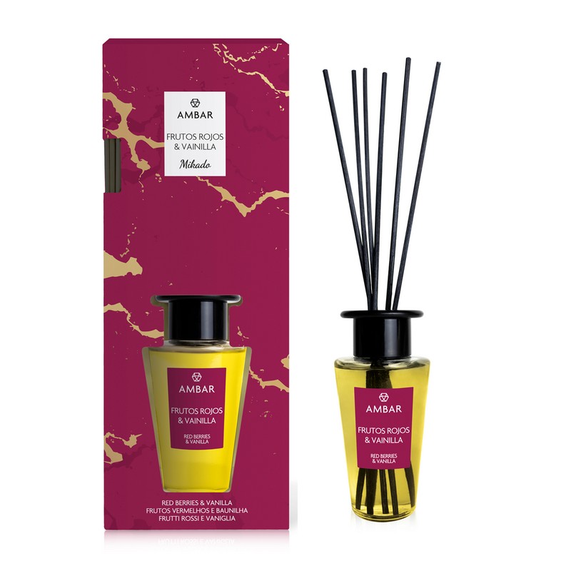 Pack de 8 (Soit 3,40€ pièce) : Mikado premium décoratif parfum Fruits Rouges & Vanille