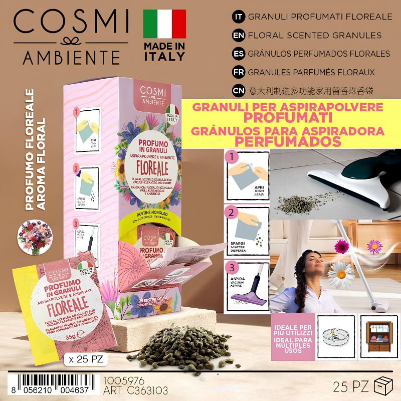 COSMI AMBIENTE – Perles Parfumées pour Aspirateur Florales (x25 sachets)