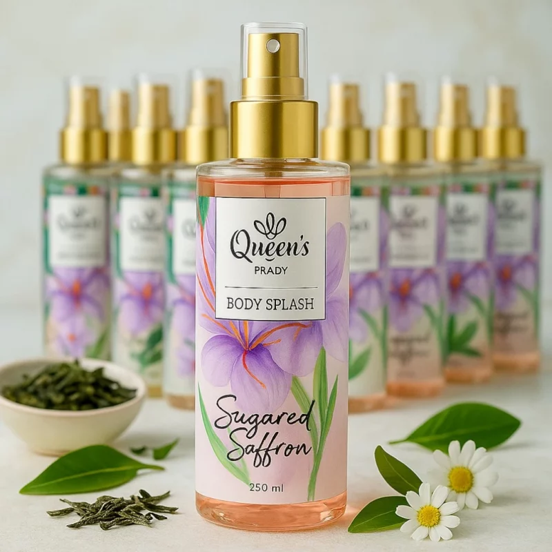Carton de 12 (soit 1,65€ pièce) : Brume corporelle rafraichissante « SUGARED SAFFRON » – Prady